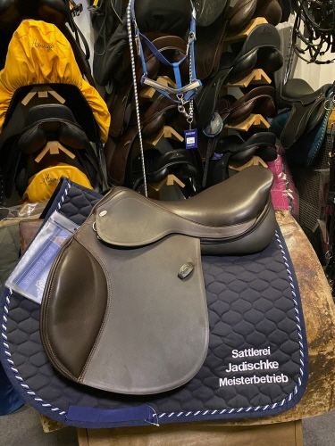 Vielseitigkeitssattel Modell „Athena“ mit großer Kniepausche für einen gut fixierten Oberschenkel des Reiters. In 3 Farben und den Sitzgrößen 16,5-18 Zoll erhältlich.