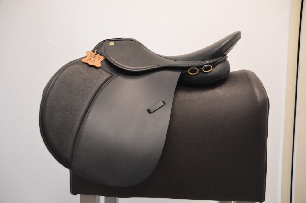 Massimo Sättel gibt es für jeden Bedarf. Hier ist es uns möglich Pferde mit nahezu ohne Widerrist vernünftig zu bedienen. Teilweise sind Kammerweiten bis 42 cm möglich. Das gibt uns eine Grundlage, Pferde ohne Widerrist und breiter Schulter einen passenden Sattel herzustellen. Wie im Bild zu sehen auch in größeren Größen wie z.B. 18,5 er Sitzgröße.